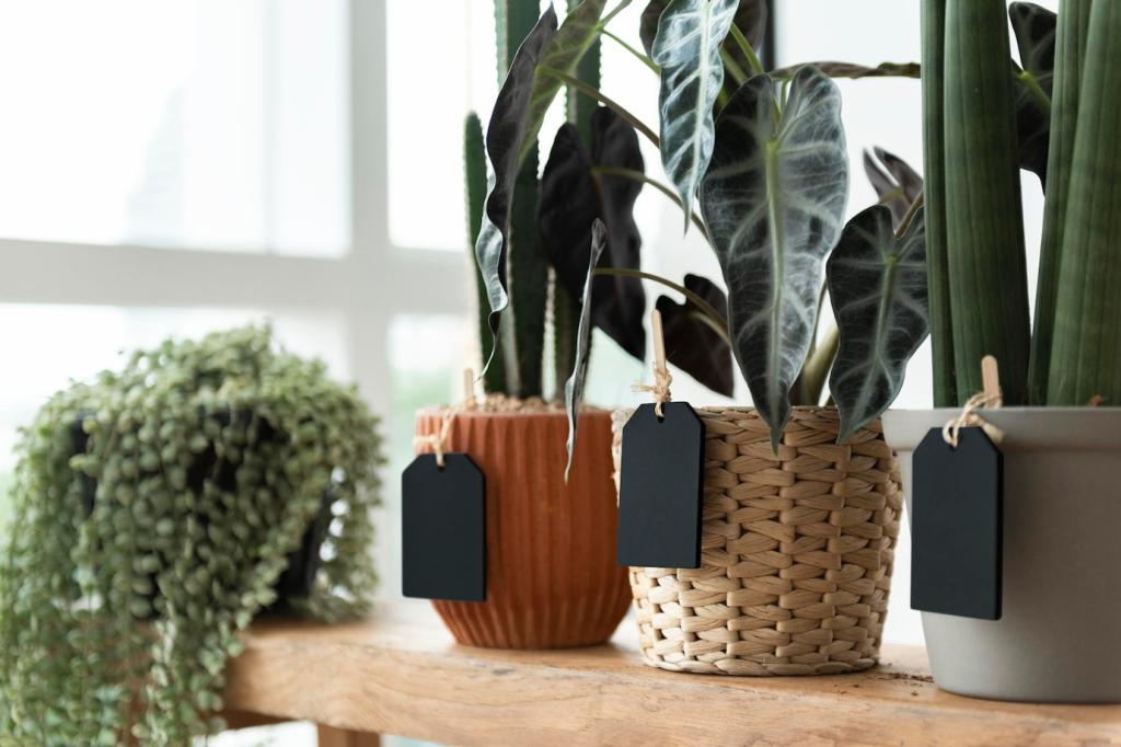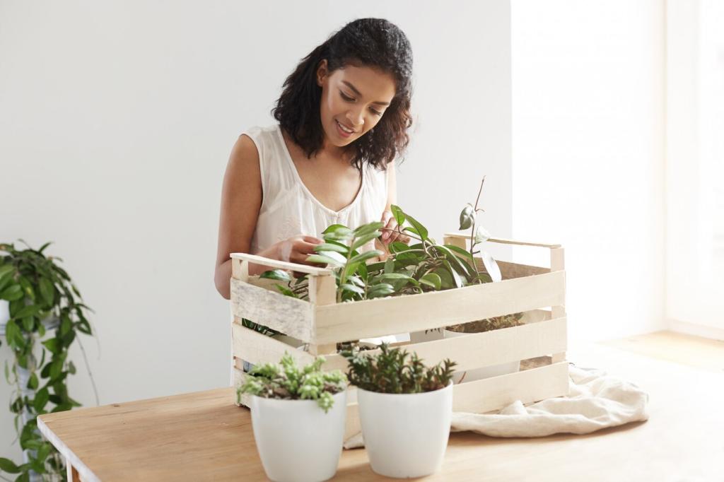 Terrakotta reguliert Feuchtigkeit, recycelter Kunststoff ist leicht und robust. Einheitliche, matte Oberflächen wirken ruhig. Nutze torffreie Erde, um Moore zu schützen. Zeig uns deinen Lieblingsübertopf und erzähle, warum er perfekt zu deinem Stil passt.